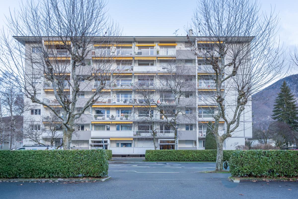 A LOUER, 2 P + C de 57 m² à ANNECY LE VIEUX en 6ème étage d'un ensemble immobilier en copropriété de standing situé dans un secteur résidentiel au calme, à mi-chemin entre le centre commercial d'Albigny, des Pommaries et proche du lac. Il bénéficie de belles prestations ainsi que d'un balcon lumineux exposé EST/OUEST avec vue sur les montagnes. L'immeuble dispose d'un parking de copropriété, d'un interphone, d'un ascenseur, d'espaces verts et d'un local à vélos.