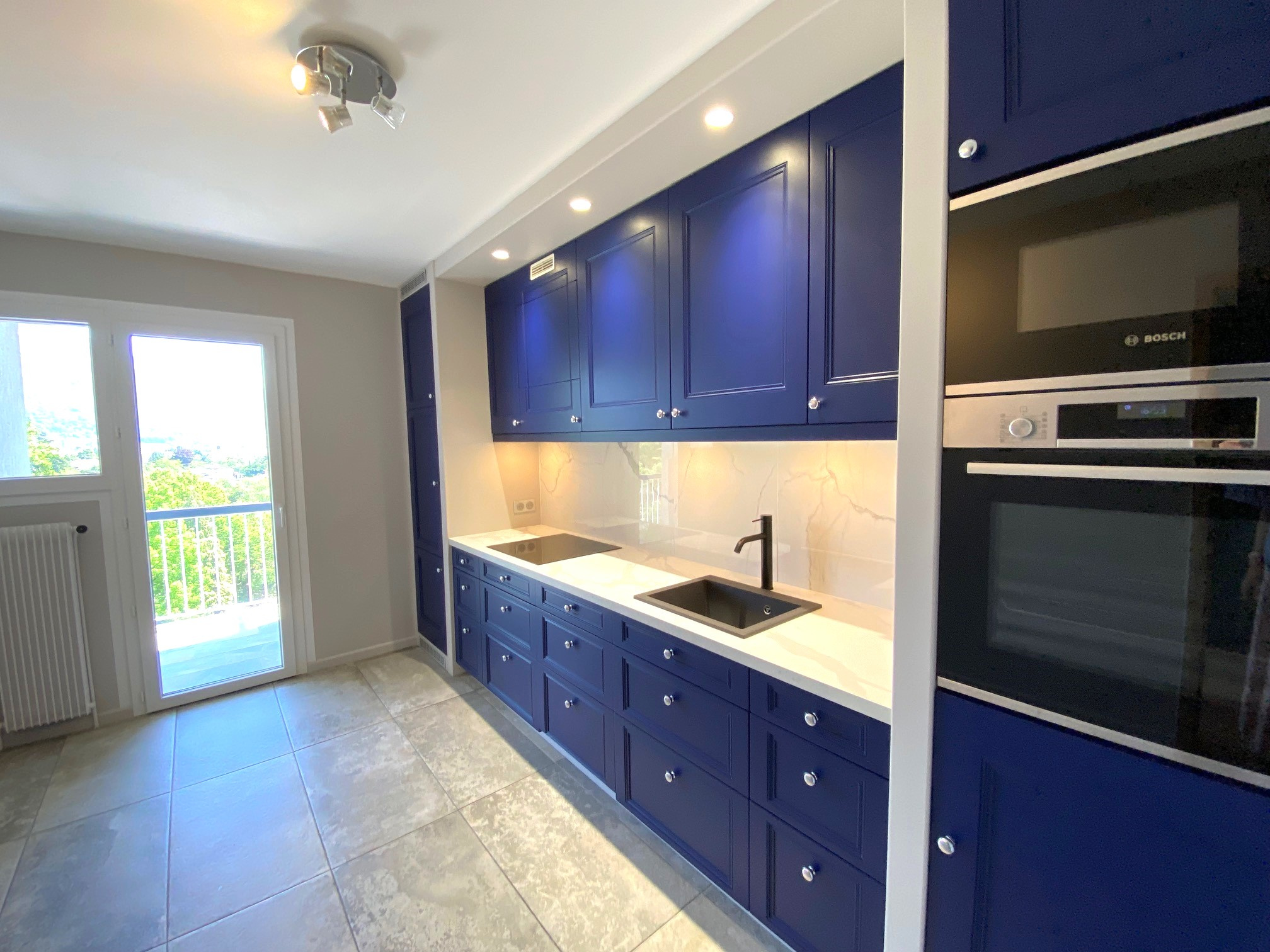 En exclusivité sur le bas d'Annecy Le Vieux, à côté de la piste cyclable, appartement de type 3 de 75 m2 entièrement rénové. Ce 3 pièces comprend : un hall d'entrée avec des rangements, un séjour et une cuisine sur un balcon (vue panoramique sur la ville, les montagnes et le lac), 2 chambres, une salle d'eau et de toilettes séparées. Prestations de qualités. En annexes : une cave, un parking de copropriété fermé et un local vélos. DPE : 'D', nb lot: 60, ch/an: 2313 (chauffage et eau chaude inclus), honoraires charge vendeur.