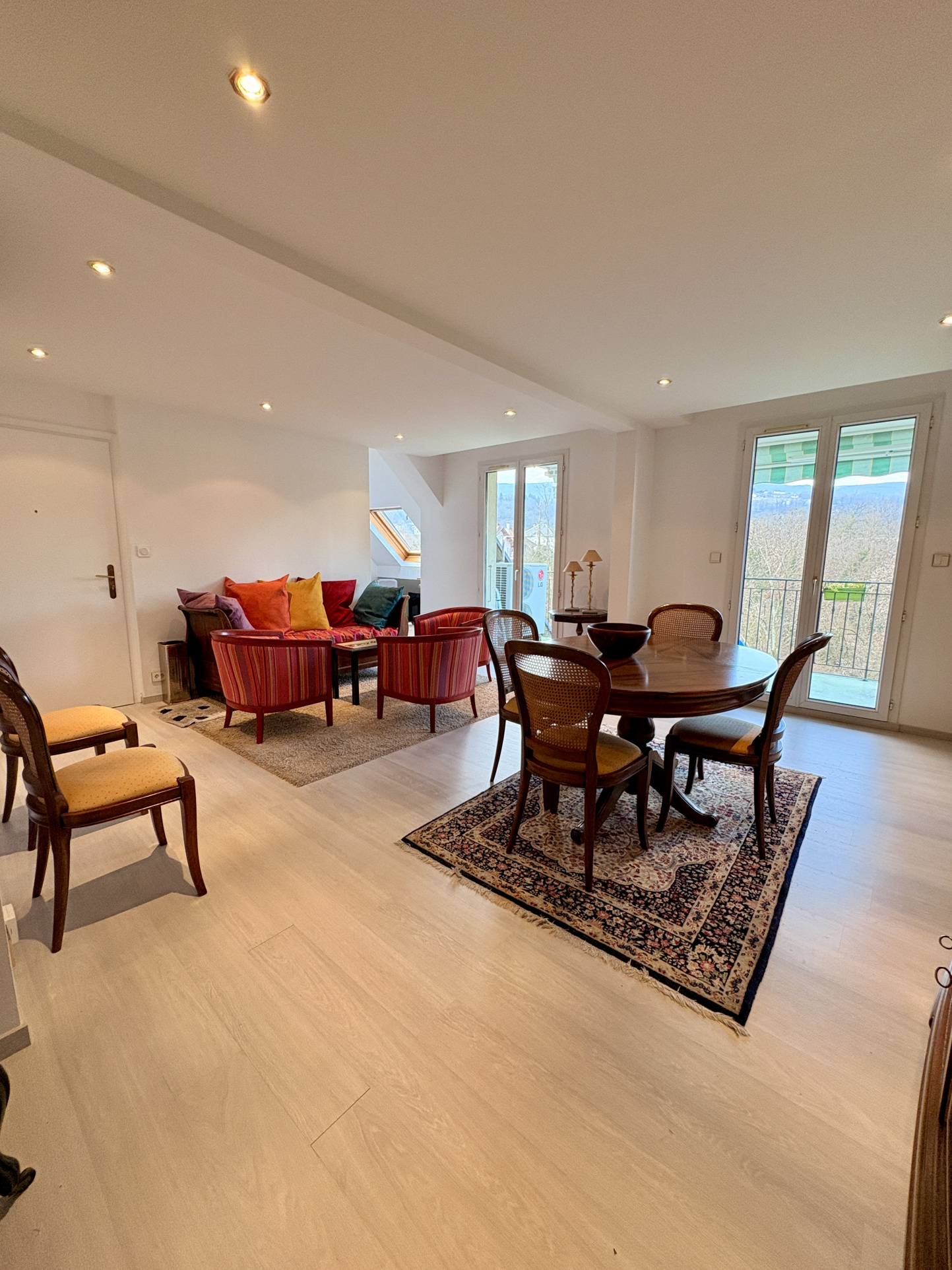 Sur la commune de Rumilly, secteur vieille ville, à proximité immédiate des commerces et de la gare, découvrez ce bel appartement T3 de 83m2 situé dans une copropriété calme, en bord de courant d’eau.<br>D’une belle surface, il offre une pièce de vie spacieuse et lumineuse ouvrant sur un balcon de 9 m2 exposé au soleil.<br>Il comprend également deux chambres avec placard, un dressing sur mesure, un cellier, une salle d’eau avec douche à l’italienne, et des toilettes séparées.<br>Les atouts : luminosité, ascenseur, rénovation intérieure récente, chauffage et eau chaude collectifs, ainsi qu’un garage et une grande cave.<br>Chauffage et eau chaude compris dans les charges.<br>Un appartement confortable, bien situé et agréable à vivre, parfait pour une vie citadine paisible à Rumilly.<br>Contact : Baptiste 07 86 74 09 02 pour organiser une visite et échanger sur votre projet immobilier.