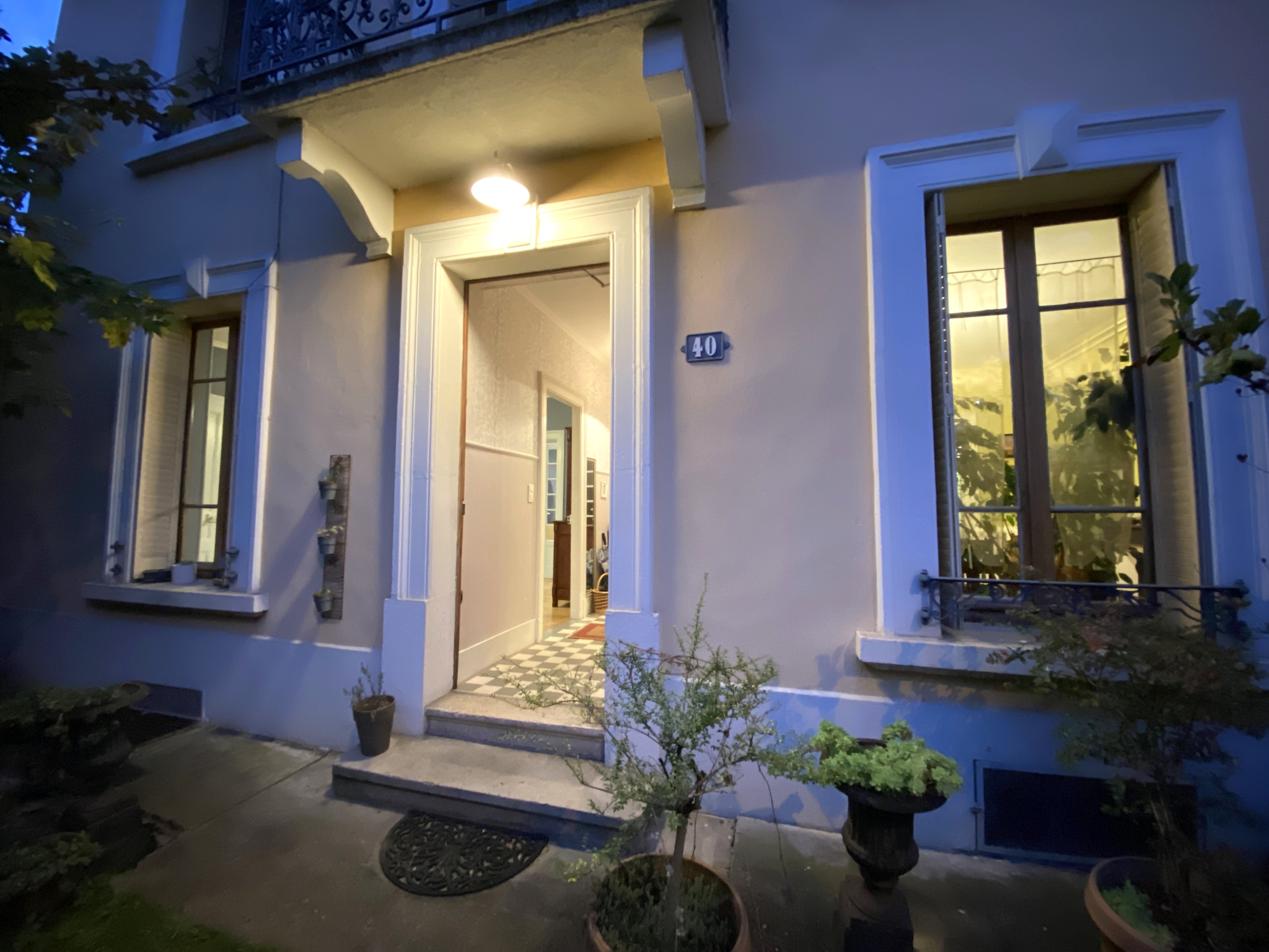 Charme préservé pour cette maison ancienne idéalement située pour une famille (proximité immédiate du centre-ville, des écoles et bus). Terrain de 558 m2. Les grandes pièces de vie sont en rez de chaussée avec terrasse. Au premier étage, trois chambres, salle de bains et terrasse. Combles en partie aménagés avec deux chambres, bureau et grenier aménageable avec point d'eau. En rez de jardin, appartement de deux pièces avec accès indépendant, terrasse et jardin privatifs. Différentes dépendances dont un garage. Belle vue dégagée et calme