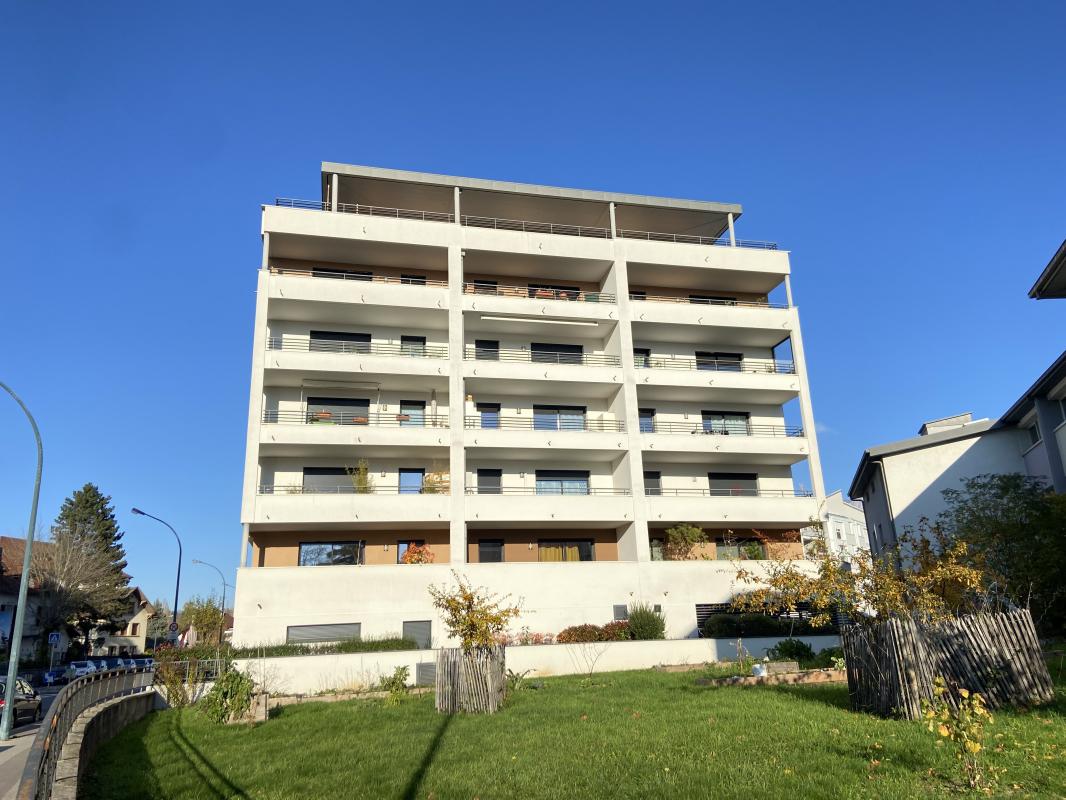 A LOUER, 2 P+C MEUBLE de 45 m² à ANNECY en 5ème étage d'un immeuble récent situé dans le quartier PARMELAN, proche des Galeries Lafayette et du lac. Il bénéficie de prestations de qualité et d'une terrasse de 11 m². Une place de parking privative en sous-sol est rattachée à ce logement. L'immeuble dispose d'un ascenseur, d'espaces verts, d'un local vélos, et d'un vidéophone.