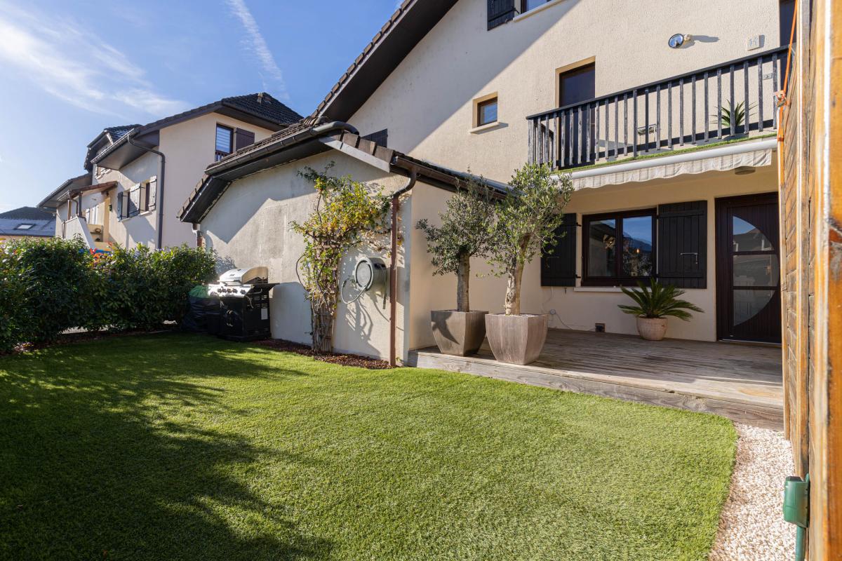 A LOUER, 3P+C duplex en RDJ de 66 m² à MEYTHET situé dans un secteur pavillonnaire au calme. Il bénéficie de belles prestations, d'une terrasse avec store toile, de deux jardins privatifs clos ainsi qu'une exposition Est/Ouest. Un garage et un espace de stockage extérieur sont rattachés à ce logement.