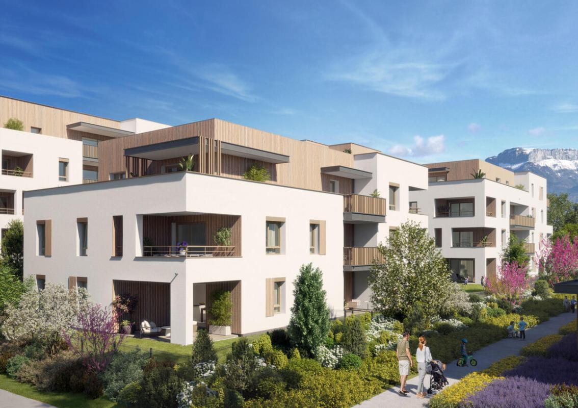 A LOUER TYPE 3 MEUBLÉ de 66 m² à ANNECY en rez-de jardin d'un petit ensemble immobilier NEUF situé au cœur de l'éco-quartier Pré Billy.