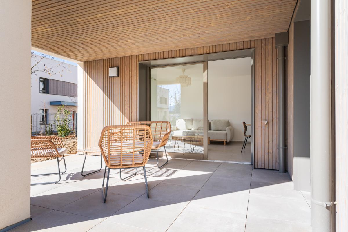 A LOUER TYPE 3 MEUBLÉ de 66 m² à ANNECY en rez-de jardin d'un petit ensemble immobilier NEUF situé au cœur de l'éco-quartier Pré Billy.