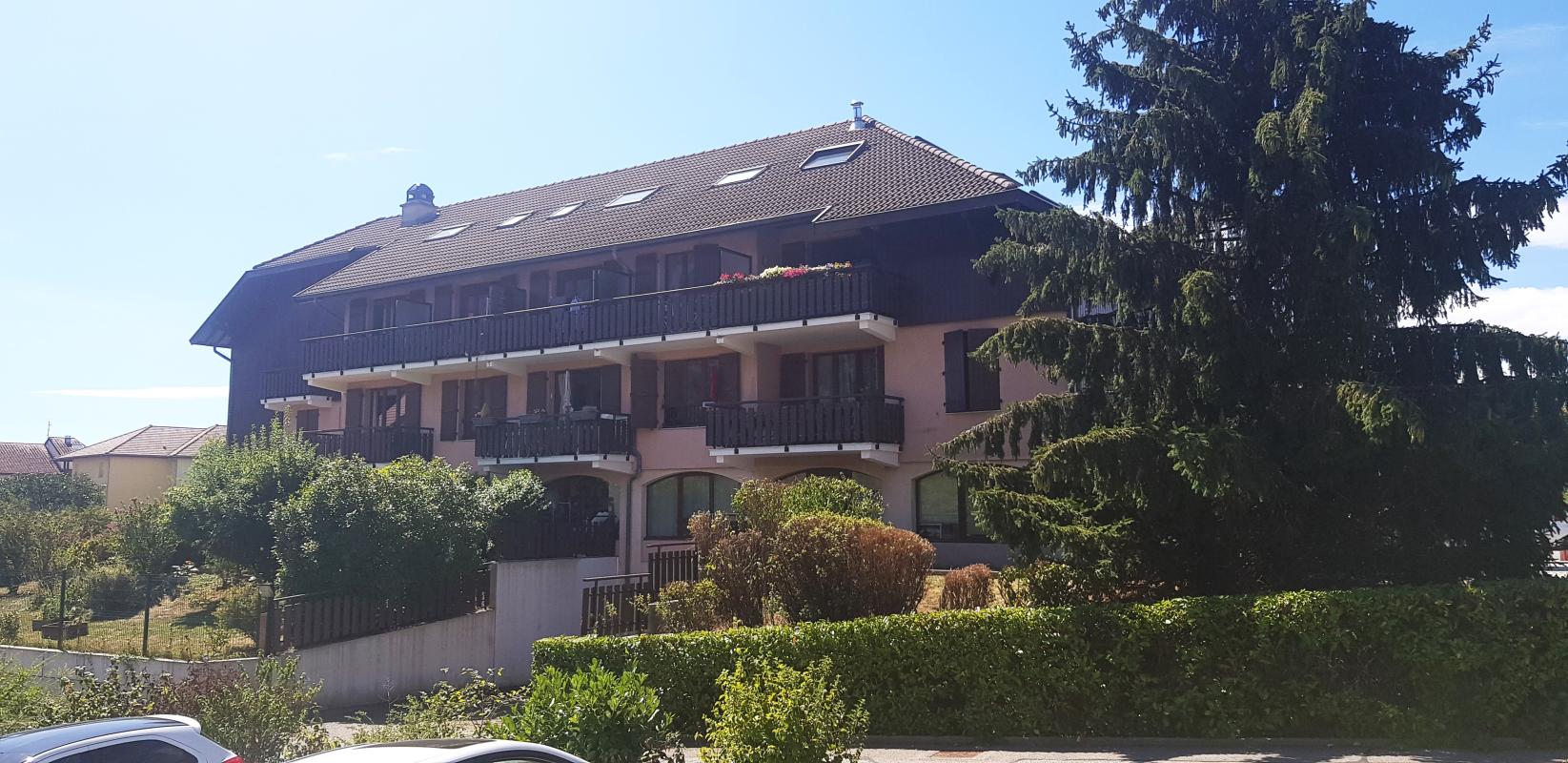 A LOUER, 2 P+C de 64 m² à VILLAZ en 1er étage situé au centre du village et à 10 kms d'Annecy au calme et à la campagne. Il bénéficie d'un balcon de 6 m² et d'une exposition Est. Une cave en sous-sol et un parking sont rattachés à ce logement. L'immeuble dispose d'un interphone, d'espaces verts et d'un local à vélos.