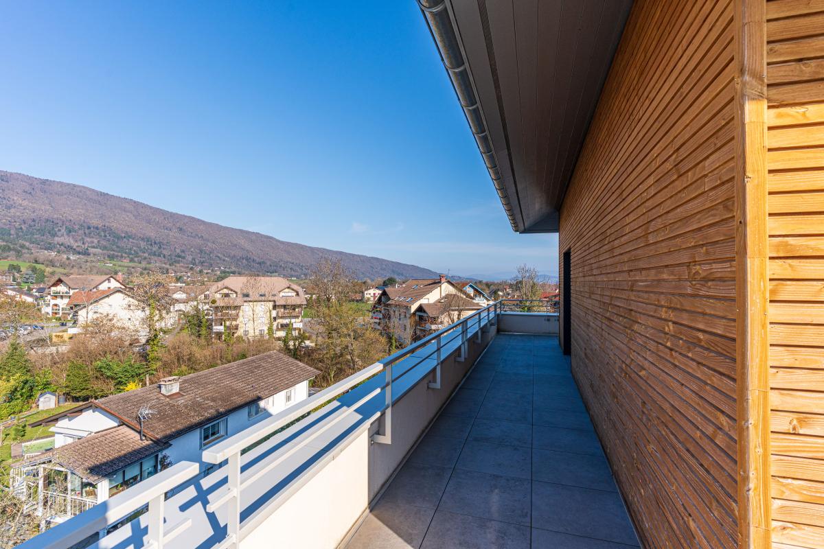 Cet appartement bénéficie d'une belle terrasse avec pergolas et store, offrant vue dégagée sur les montagnes.