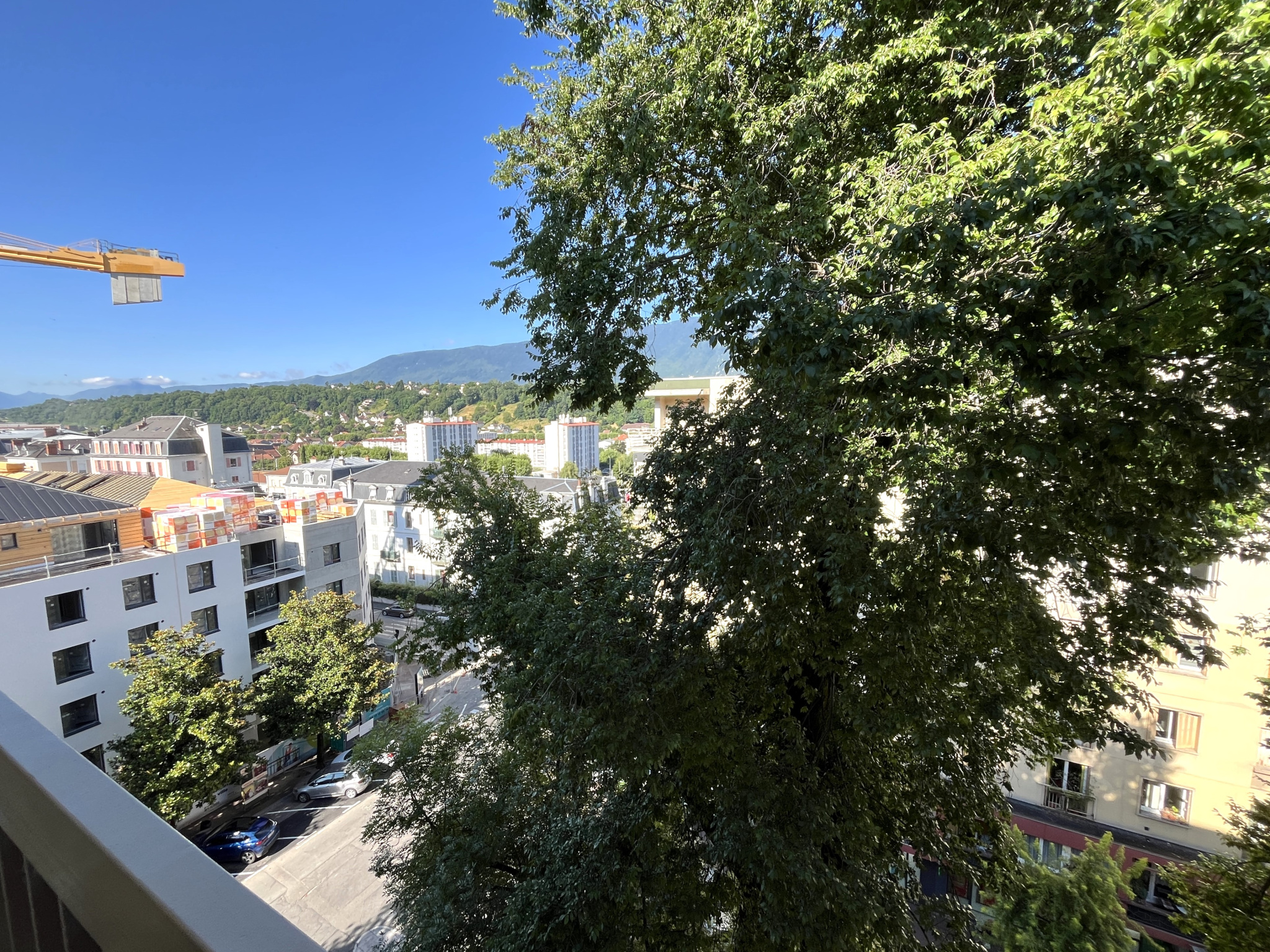 Au septième et dernier étage d'un immeuble au centre-ville, spacieux T2 traversant est et ouest. Hall d'entrée desservant la cuisine (avec son cellier attenant), le séjour, la chambre avec placard, la salle d'eau et le WC indépendant. Belle vue dégagée. Menuiseries PVC oscillo battantes, climatisation, porte blindée... Une cave en sous-sol. Idéal pour vivre sans voiture au quotidien