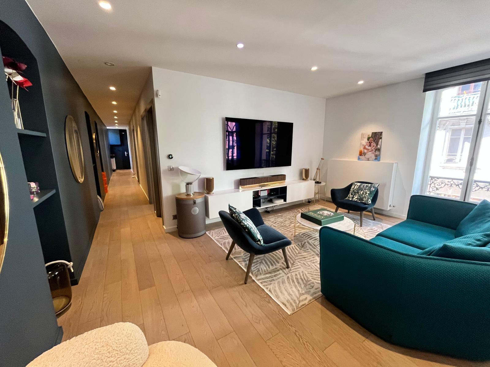 CENTRE VILLE ANNECY à quelque spas du lac et du centre de Bonlieu - Superbe appartement de 4 pièces entièrement rénové et décoré par un architecte / décorateur. Cet appartement allie le caractère d'un immeuble ancien et citadin aux prestations actuelles et contemporaines. Très bel espace de vie avec une cuisine équipée ouvrant sur une salle à manger au coeur d'une verrière, 3 chambres dont une avec balcon, des placards aménagés et une grande salle de bains avec baignoire, douche et buanderie.Possibilité d'une seconde pièce d'eau. Climatisation posisble. Une cave de 7 m2. Ch/an: 960 € Lots: 5