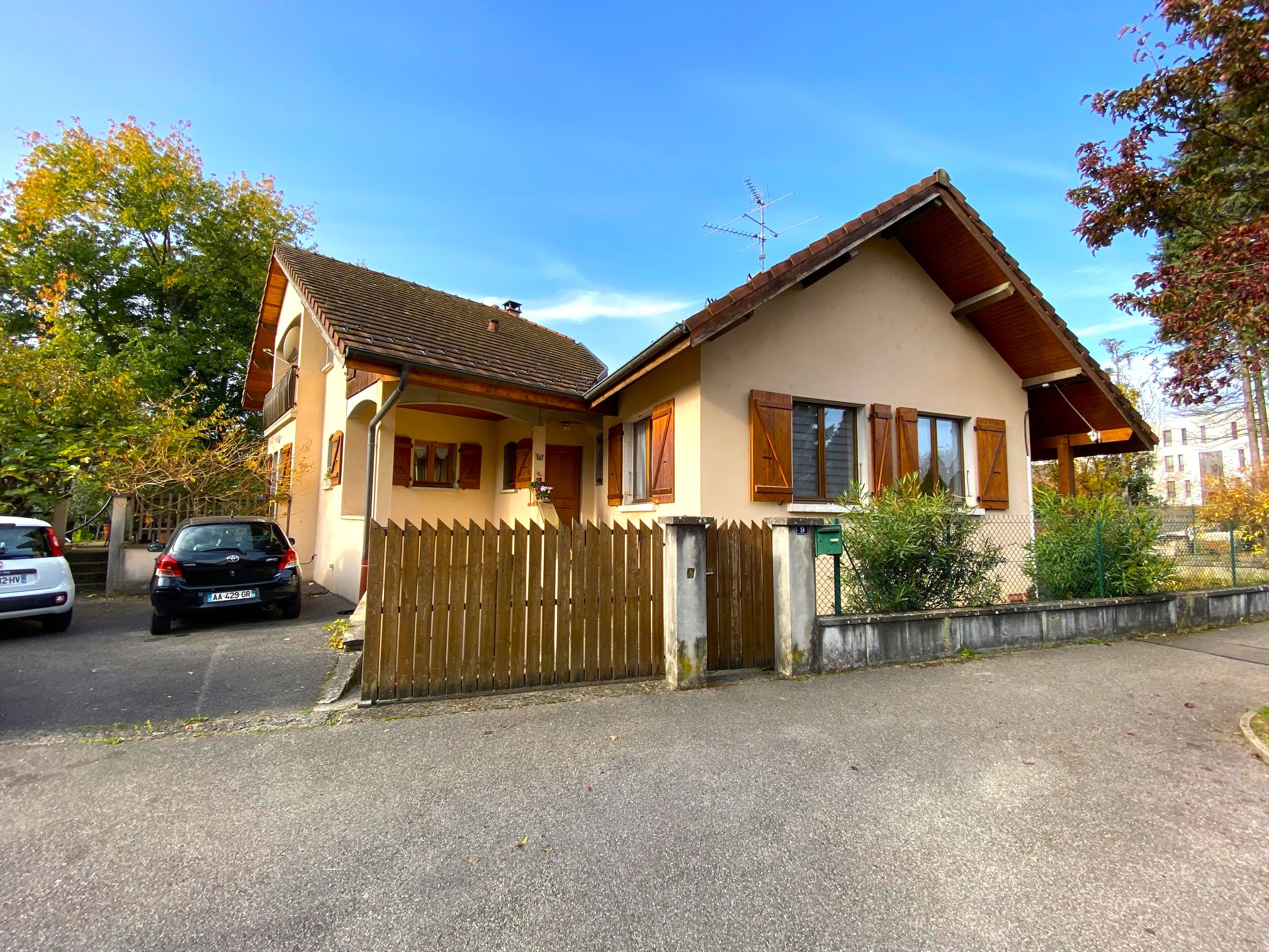 EXCLUSIVITE - Maison de 6 pièces de 136 m2 située à Annecy sur l'axe Genève, proche des écoles et des bus, édifiée en 1997 sur un terrain plat de 550 m2. Elle comprenant un séjour avec cheminée et une cuisine sur une terrasse (exposée sud), 3 chambres, une salle de bains, 2 toilettes ainsi qu'un 2 pièces indépendant. En sous-sol 100 m2: un grand garage, 3 caves et des places de parking extérieurs. DPE: F - Honoraires charge vendeur.