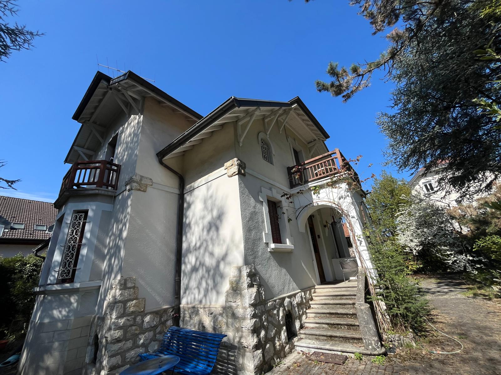 Entre ANNECY et ANNECY LE VIEUX - Superbe maison de ville implantée au coeur d'un grand parc arboré de 1861 m2 avec grandes dépendances. Entre volume et caractère, cette propriété des années 1930 offre un magnifique potentiel dans un environnement citadin. Elle se compose au RDC d'un double salon en parquet, une grande cuisine, une chambre et une salle de bains. A l'étage 3 très grandes chambres, dressings et plusieurs salles d'eau possibles. Nombreuses dépendances complètent cette propriété; un sous-sol complet et à l'extérieur 2 garages et une annexe transformable en bureaux ou studio indépendant. A l'abri des regards cette propriété sera vous charmer par son emplacement et son potentiel.