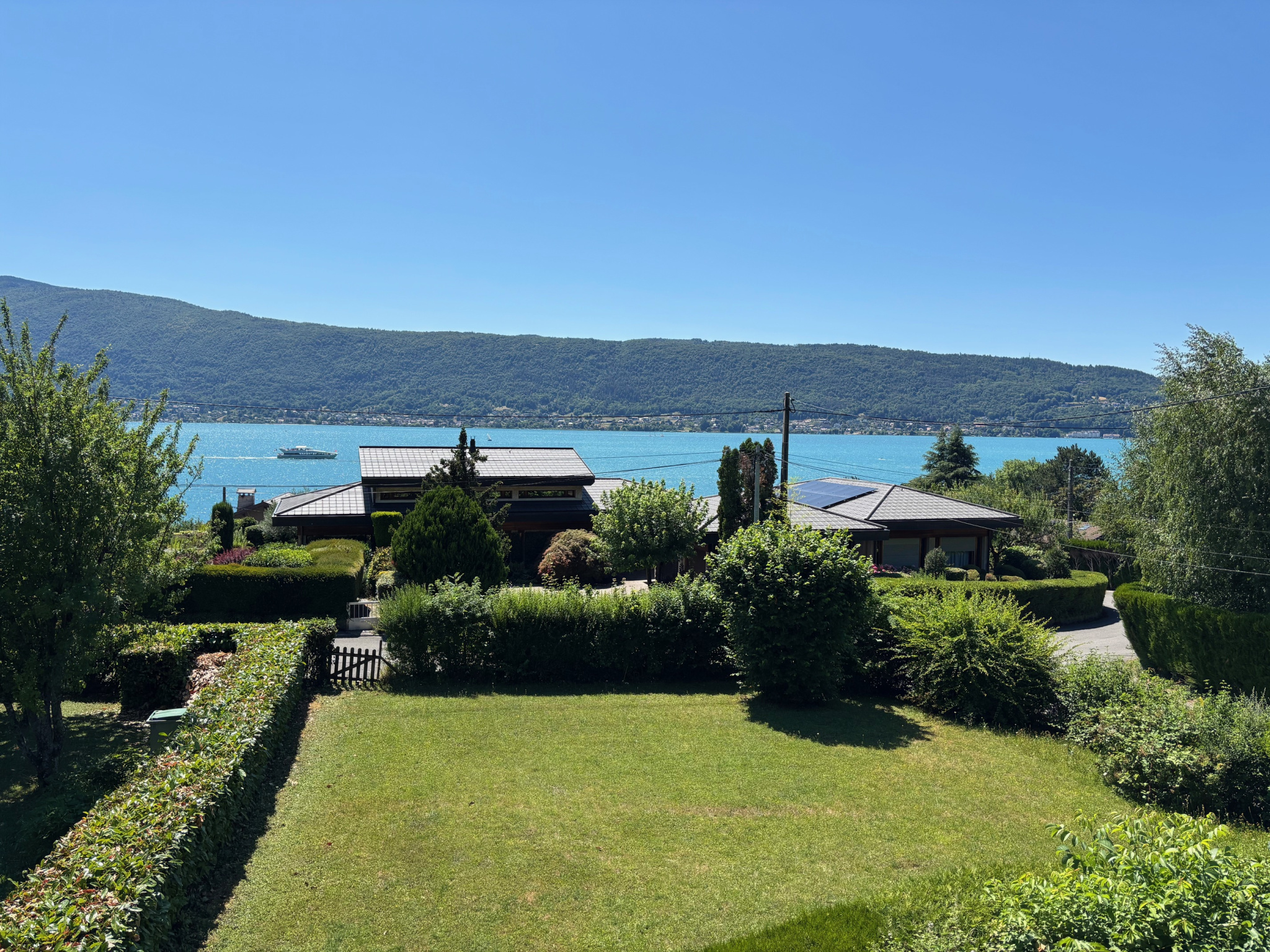 EXCLUSIVITE, emplacement exceptionnel à VEYRIER-DU-LAC dans un domaine sécurisé avec accès direct au lac, maison individuelle de 6 pièces offrant une magnifique vue lac. Maison idéale pour une maison de vacances, en bon état elle est composée d'une lumineuse pièce de vie avec cheminée, une cuisine équipée et une chambre/bureau de plain pied. A l'étage, 4 chambres dont deux ouvrant sur balcon avec une superbe vue sur le lac, une salle de bains et une salle de douche. Grand garage et sous sol avec cave et chaufferie. Terrain plat et arboré de 544m2 + la jouissance privative en indivision d'un terrain attenant. Accès à une petite plage avec ponton privé sécurisée. RARE A LA VENTE.